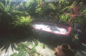 garden bathroom with a private Jacuzzi and shower.